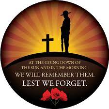 Remembrance Day Service 11th November. 10:30am 10.30am Flag at half-mast 10.45am Welcome & acknowledgement of country. With all upstanding, a recitation of The Ode. 11.00am Last Post, followed by one minutes silence. “Lest we forget” Rouse. During which the flag will be brought to full mast.